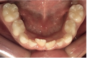 Figura 1: Fotografía intraoral oclusal de la arcada inferior: Se observa la presencia de los incisivos laterales primarios inferiores.