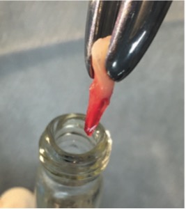 Figura 7: Almacenamiento del diente 82 en el tubo de ensayo.