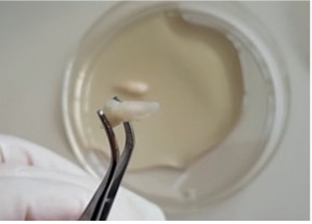 Figura 11: Fragmentos de los tejidos pulpares en la placa de Petri con medio de cultivo celular